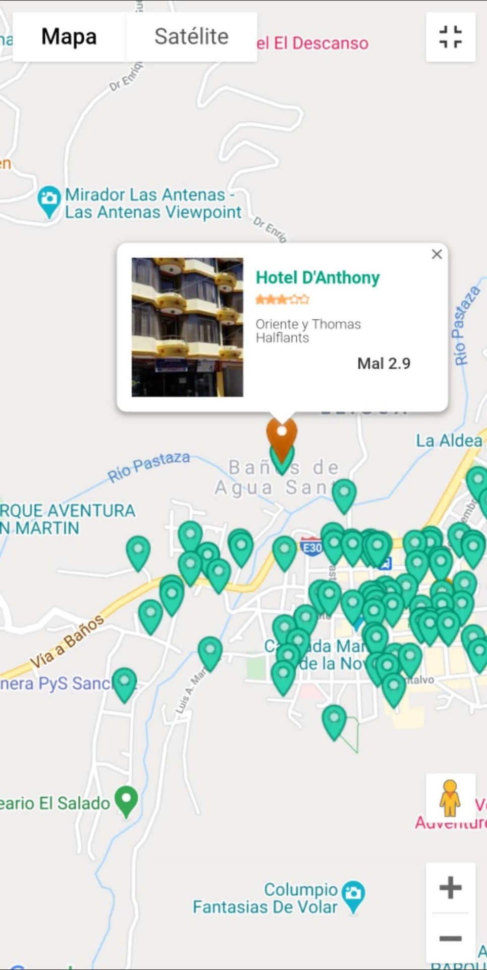 Se encuentra ubicado a 8 km de Baños en la calle Oriente y Thomas Halflants.